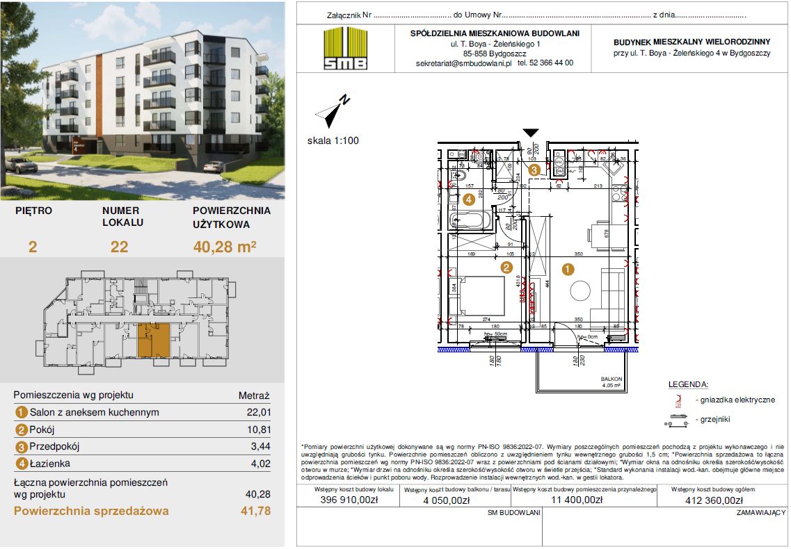 Pomiary powierzchni użytkowej dokonywane są wg normy PN-ISO 9836:2022-07. Wymiary poszczególnych pomieszczeń pochodzą z projektu wykonawczego i nie uwzględniają grubości tynku. Powierzchnie pomieszczeń obliczono z uwzględnieniem tynku wewnętrznego grubości 1,5 cm; *Powierzchnia sprzedażowa to łączna powierzchnia pomieszczeń wg normy PN-ISO 9836:2022-07 wraz z powierzchniami pod ścianami działowymi; *Wymiar okna na odnośniku określa szerokość/wysokość otworu w murze; *Wymiar drzwi na odnośniku określa szerokość/wysokość otworu w świetle przejścia; *Standard wykonania instalacji wod.-kan. obejmuje główne miejsce odprowadzenia ścieków i punkt poboru wody. Rozprowadzenie instalacji wewnętrznych wod.-kan. w gestii lokatora.