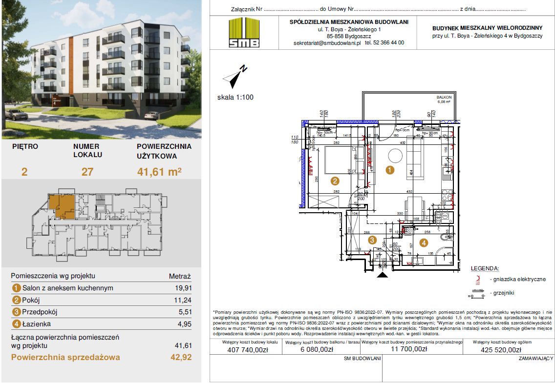 Pomiary powierzchni użytkowej dokonywane są wg normy PN-ISO 9836:2022-07. Wymiary poszczególnych pomieszczeń pochodzą z projektu wykonawczego i nie uwzględniają grubości tynku. Powierzchnie pomieszczeń obliczono z uwzględnieniem tynku wewnętrznego grubości 1,5 cm; *Powierzchnia sprzedażowa to łączna powierzchnia pomieszczeń wg normy PN-ISO 9836:2022-07 wraz z powierzchniami pod ścianami działowymi; *Wymiar okna na odnośniku określa szerokość/wysokość otworu w murze; *Wymiar drzwi na odnośniku określa szerokość/wysokość otworu w świetle przejścia; *Standard wykonania instalacji wod.-kan. obejmuje główne miejsce odprowadzenia ścieków i punkt poboru wody. Rozprowadzenie instalacji wewnętrznych wod.-kan. w gestii lokatora.